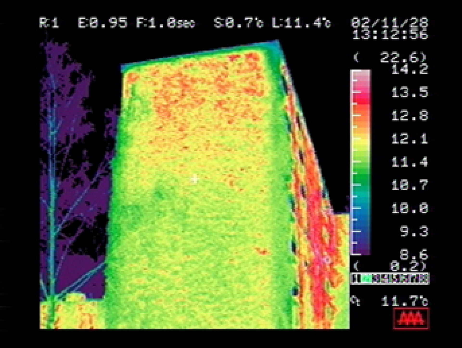 Obrázek: Infračervená fotografie demonstrující termoizolační působení břečťanu